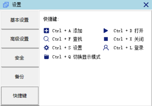 打开功能设置,选择“快捷键”选项卡,如下图: